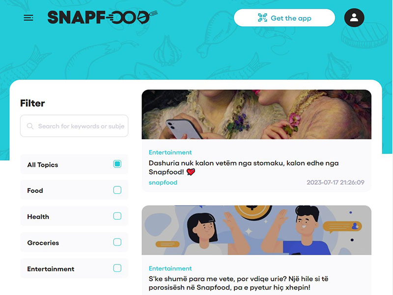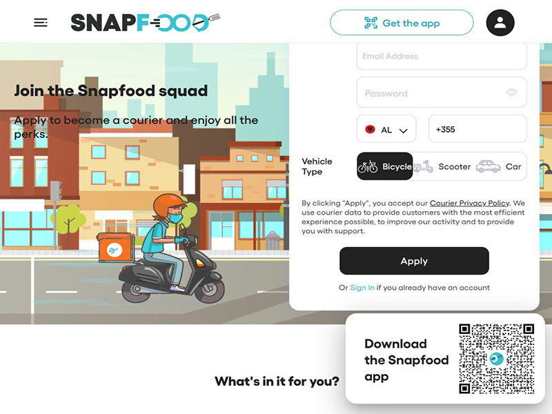 SnapFood is an online food delivery platform based in Albania. It allows users to order food from various restaurants and have it delivered to their doorstep. The website, https://snapfood.al/, serves as the main platform for customers to browse through different restaurants, view their menus, and place orders.